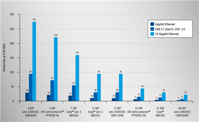 現(xiàn)代CMOS傳感器在高靈敏度,低暗噪聲和高幀速率以及非常高的動(dòng)態(tài)范圍內(nèi),可提供出色的圖像質(zhì)量。這些優(yōu)點(diǎn)與10 GigE界面一起在快速過程中發(fā)揮了優(yōu)勢(shì),例如在60 fps時(shí)高達(dá)4K的視頻應(yīng)用以及運(yùn)動(dòng)分析和虛擬現(xiàn)實(shí)應(yīng)用中。