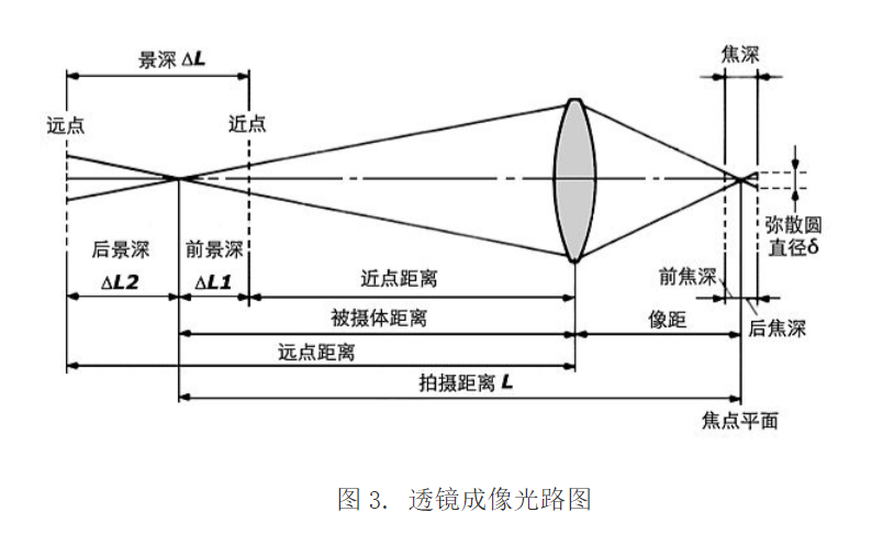首先在了解光圈與景深的關(guān)系之前,我們先介紹兩個(gè)概念。光線(xiàn)射入透鏡匯聚成一點(diǎn),在數(shù)學(xué)上,這個(gè)點(diǎn)我們稱(chēng)之為焦點(diǎn)。但是在焦點(diǎn)前后形成的光線(xiàn)的聚集和擴(kuò)散,會(huì)產(chǎn)生一個(gè)擴(kuò)大的圓,這個(gè)圓就是允許彌散圓,彌散圓仍然足夠清晰呈現(xiàn)物體,通常我們認(rèn)為這是“合焦”。因此,我們通常用允許彌散圈來(lái)作為成像清晰和成像模糊的界限。焦深:兩個(gè)允許彌散圈的距離我們稱(chēng)之為焦深。景深的大小與焦深有著密切的聯(lián)系(如圖3.成像光路圖)。前焦深對(duì)應(yīng)著前景深,后焦深對(duì)應(yīng)著后景深。所以,要知道光圈與景深的關(guān)系,必須先了解光圈與彌散圈之間的關(guān)系。