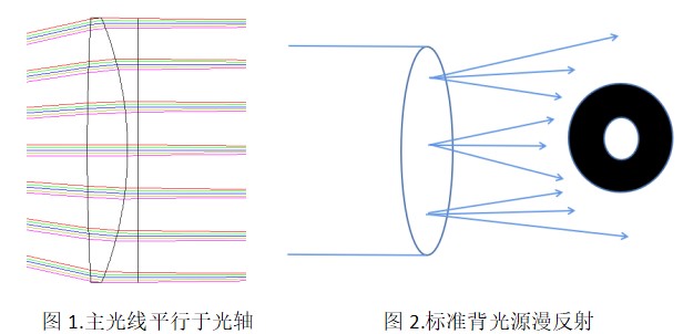 在談論遠心背光源與其他光源的區別前,我們需要先了解一下遠心光源的光路特點,在設計時我們通常會采用主光線與光軸平行的概念,即出射光為平行光,如圖1.