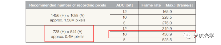 以Sony IMX287LLR/LQR芯片為例,其分辨率為728×544,在模數轉換位數為10bit時,全分辨率下所能達到的最高幀率為436.9fps,每秒鐘所產生的數據量約為165.1MB。