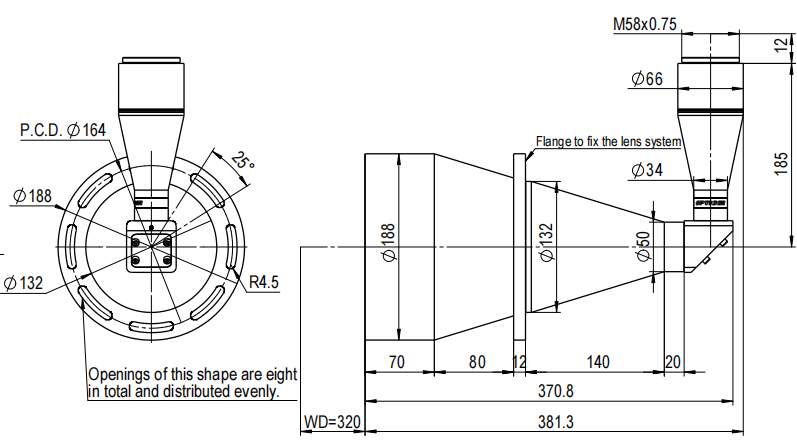 • 工作距離:320±5